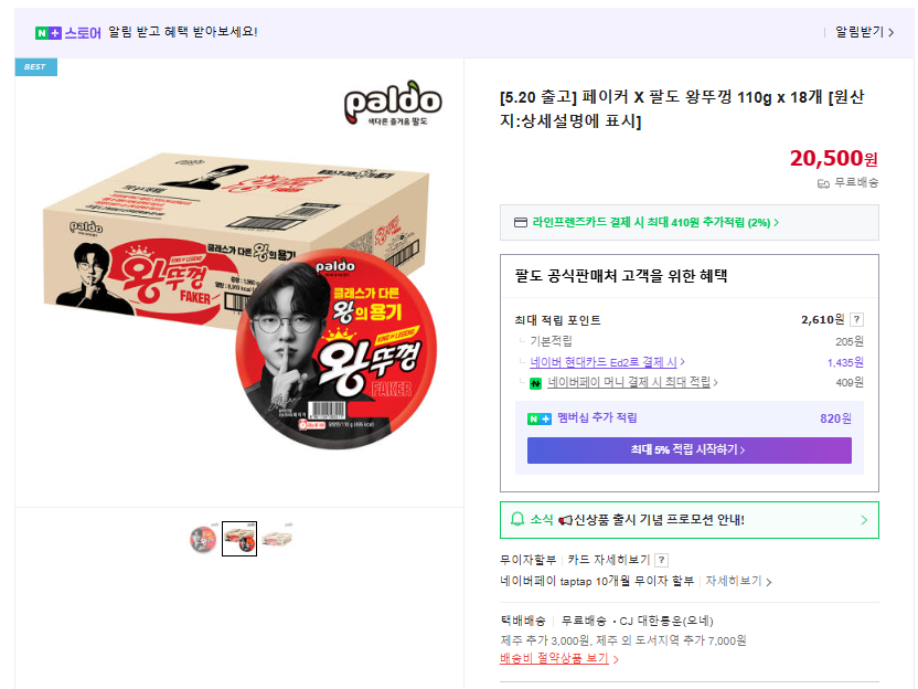 - 판매 구성: 페이커 컵라면 패키지 + 포스터 랜덤 증정